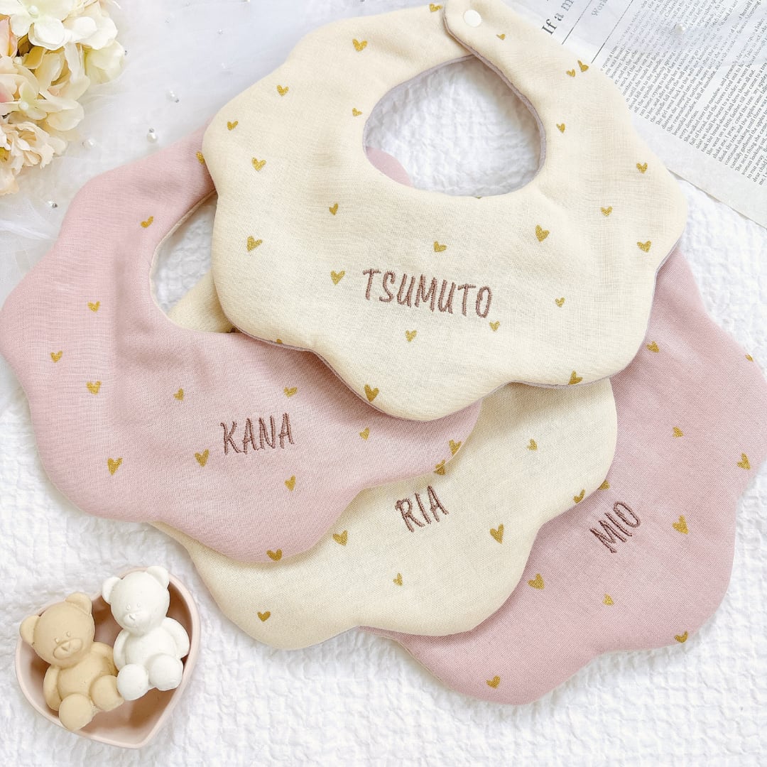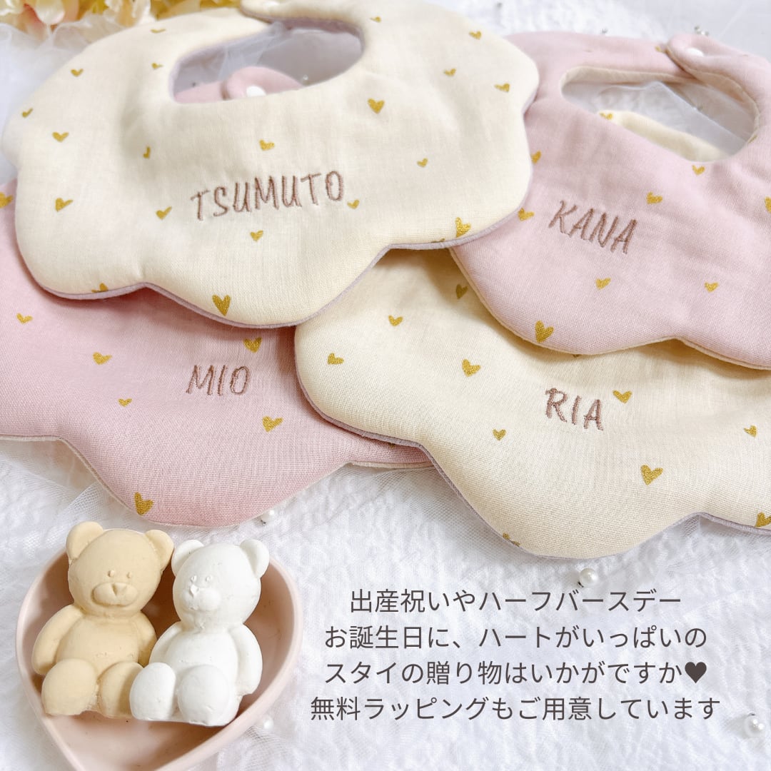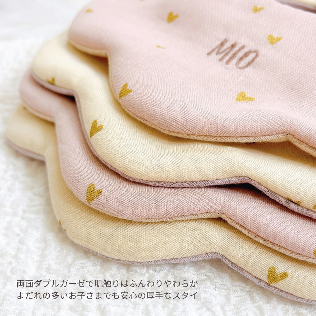 [petit heart]名入れ刺繍スタイ/ダブルガーゼ/出産祝い・ギフト可