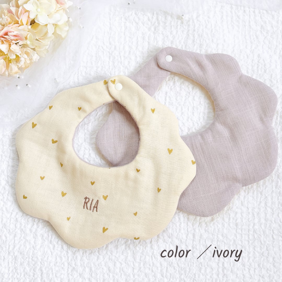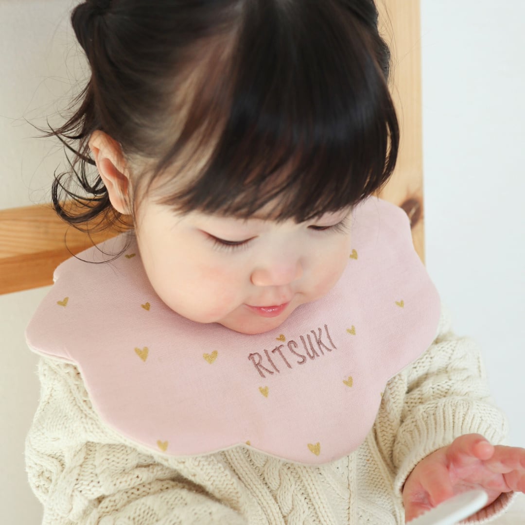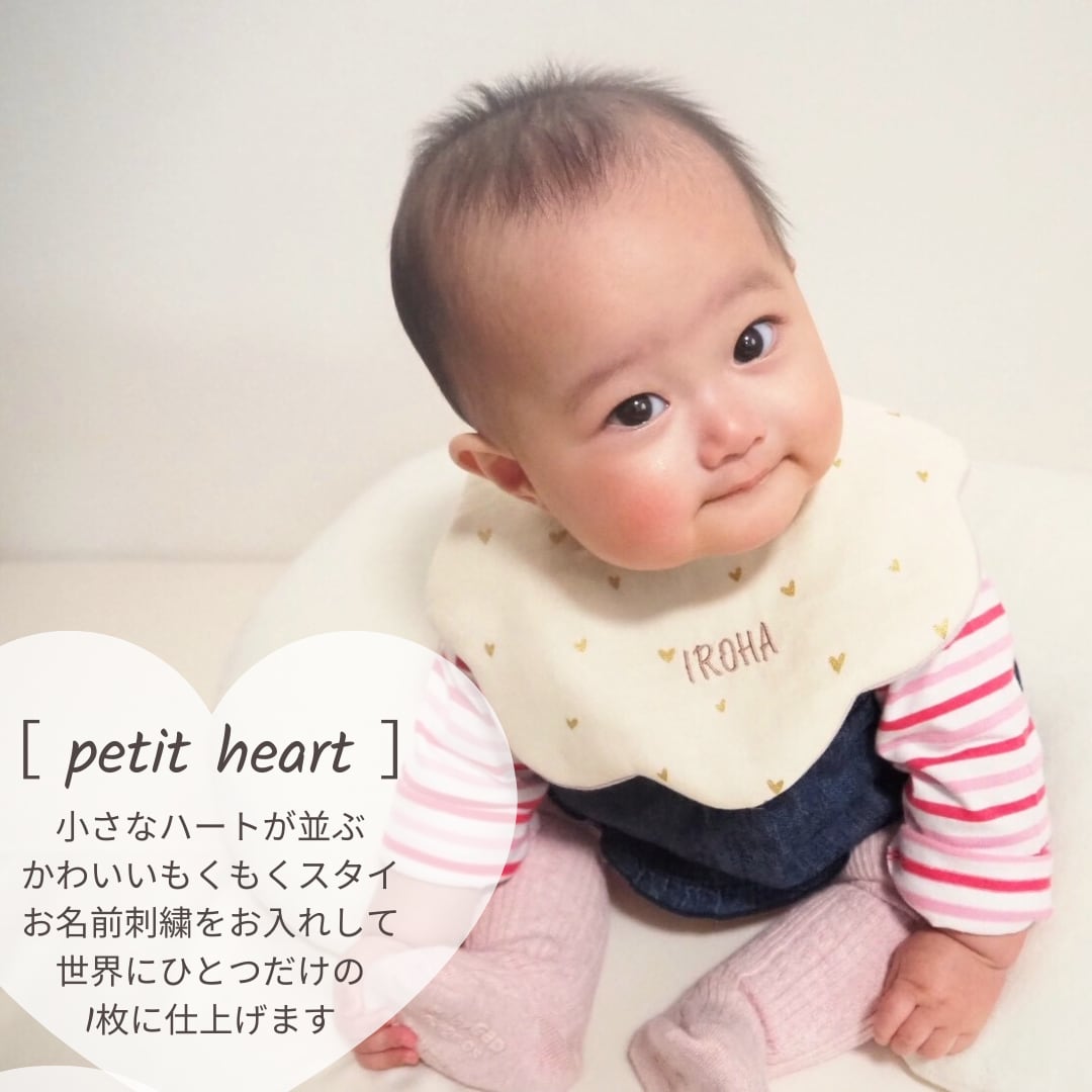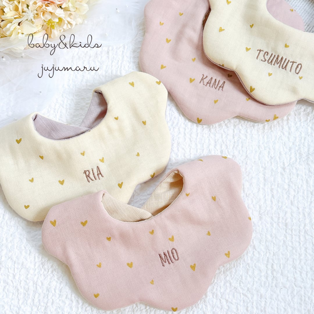 [petit heart]名入れ刺繍スタイ/ダブルガーゼ/出産祝い・ギフト可