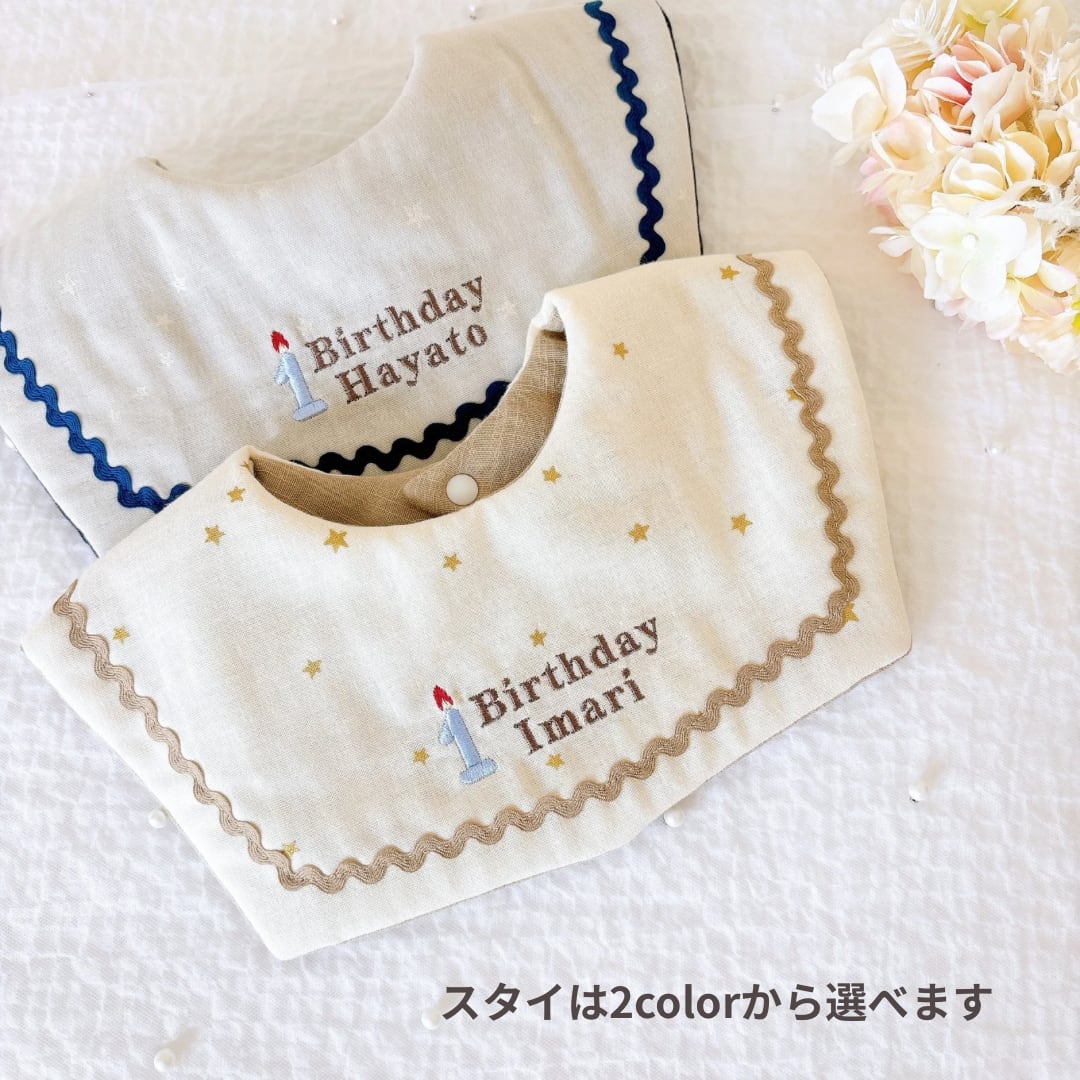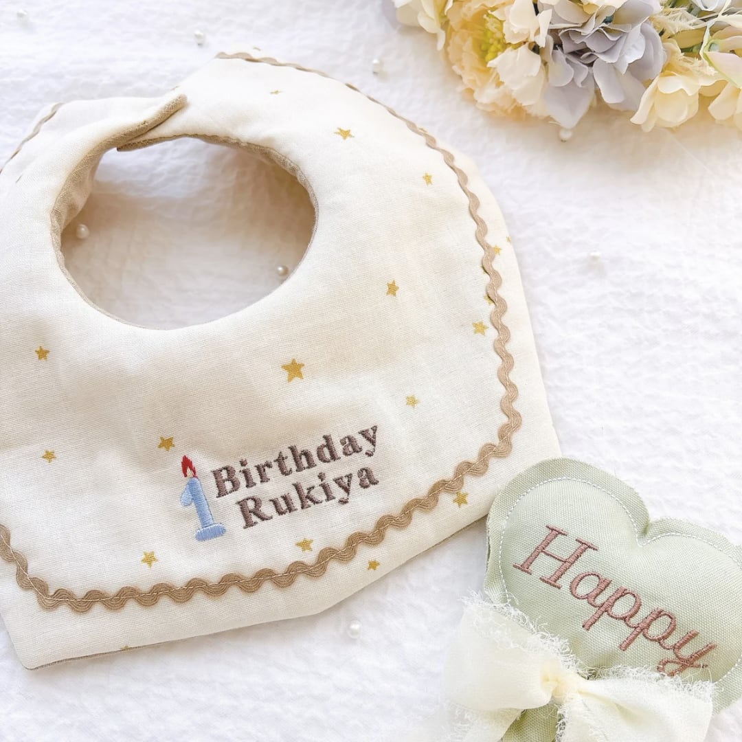 [1st Birthday bib]はじめてのお誕生日に特別な1枚を/名入れスタイ /誕生日プレゼント/ベビーギフト