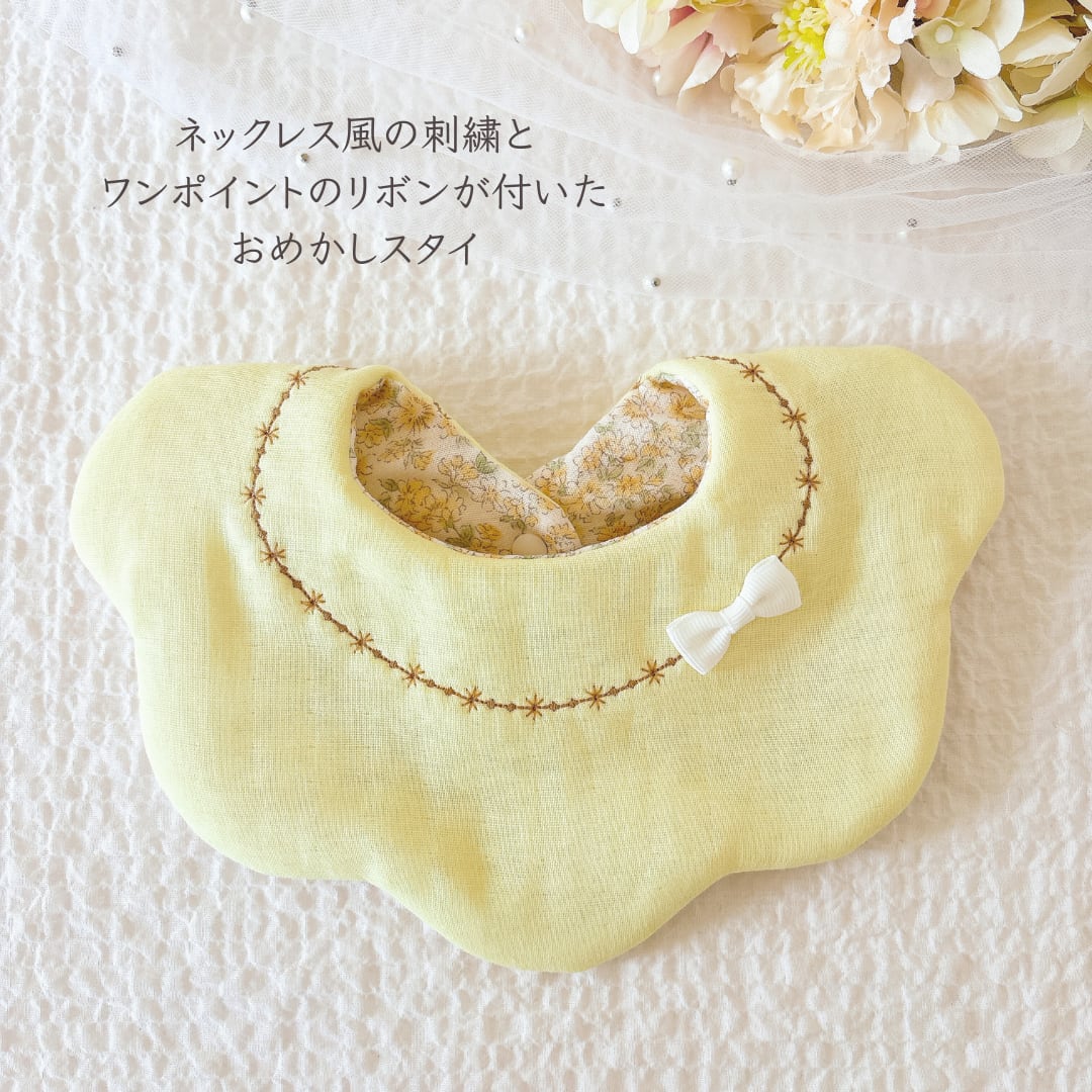 ネックレススタイ|クリームイエロー|チェーン刺繍のおめかしスタイ|フォーマル・お出かけに|出産祝い