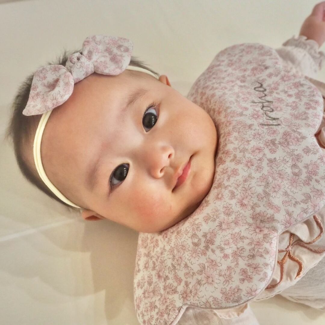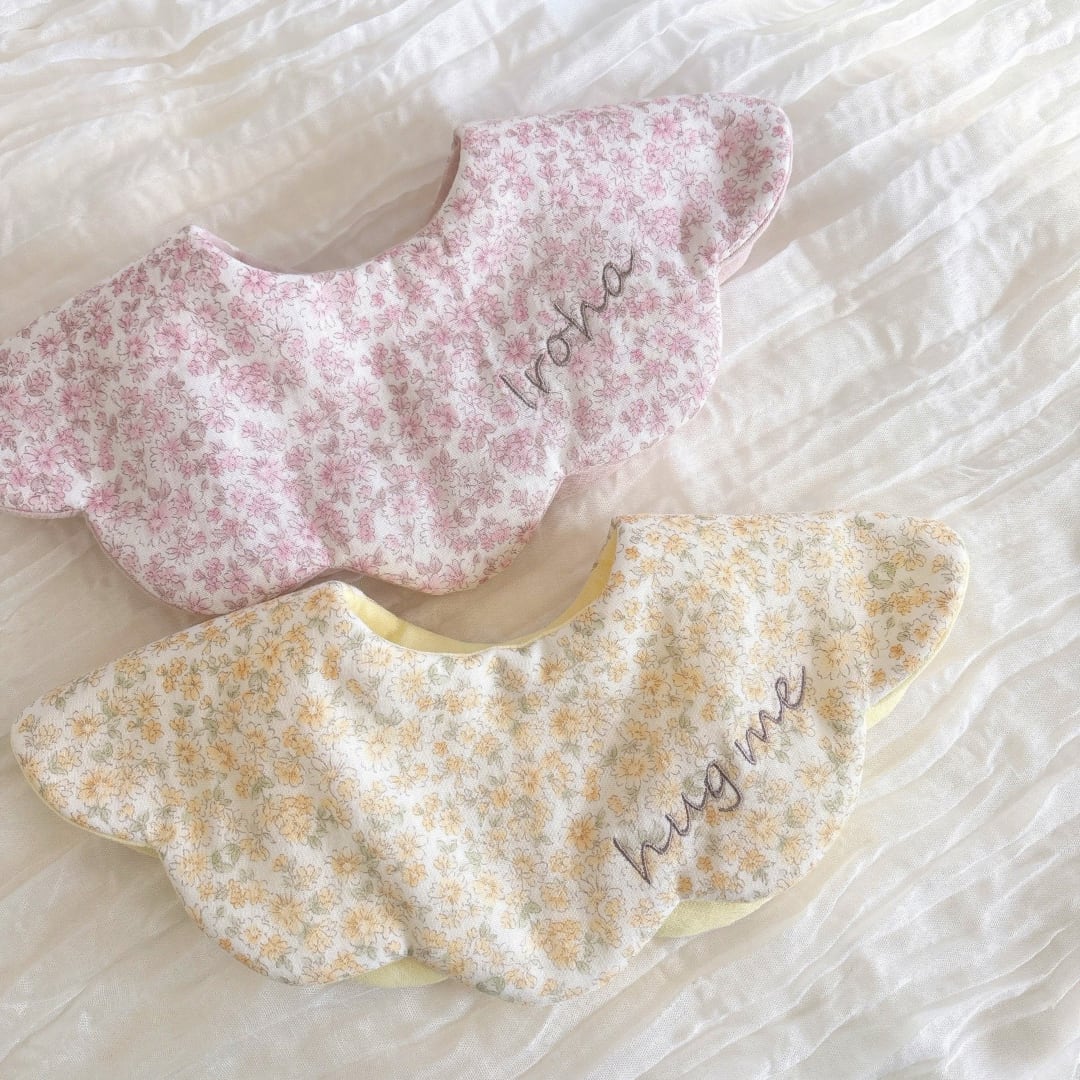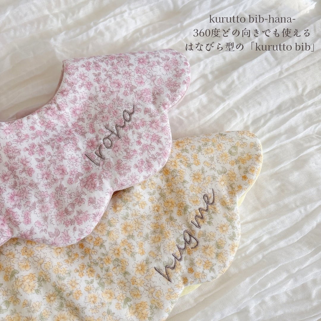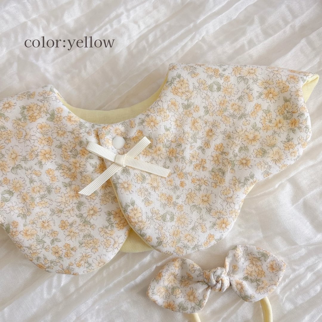 360度スタイ&ヘアバンドセット|kurutto bib-hana-|小花柄|出産祝い|名入れ刺繍対応