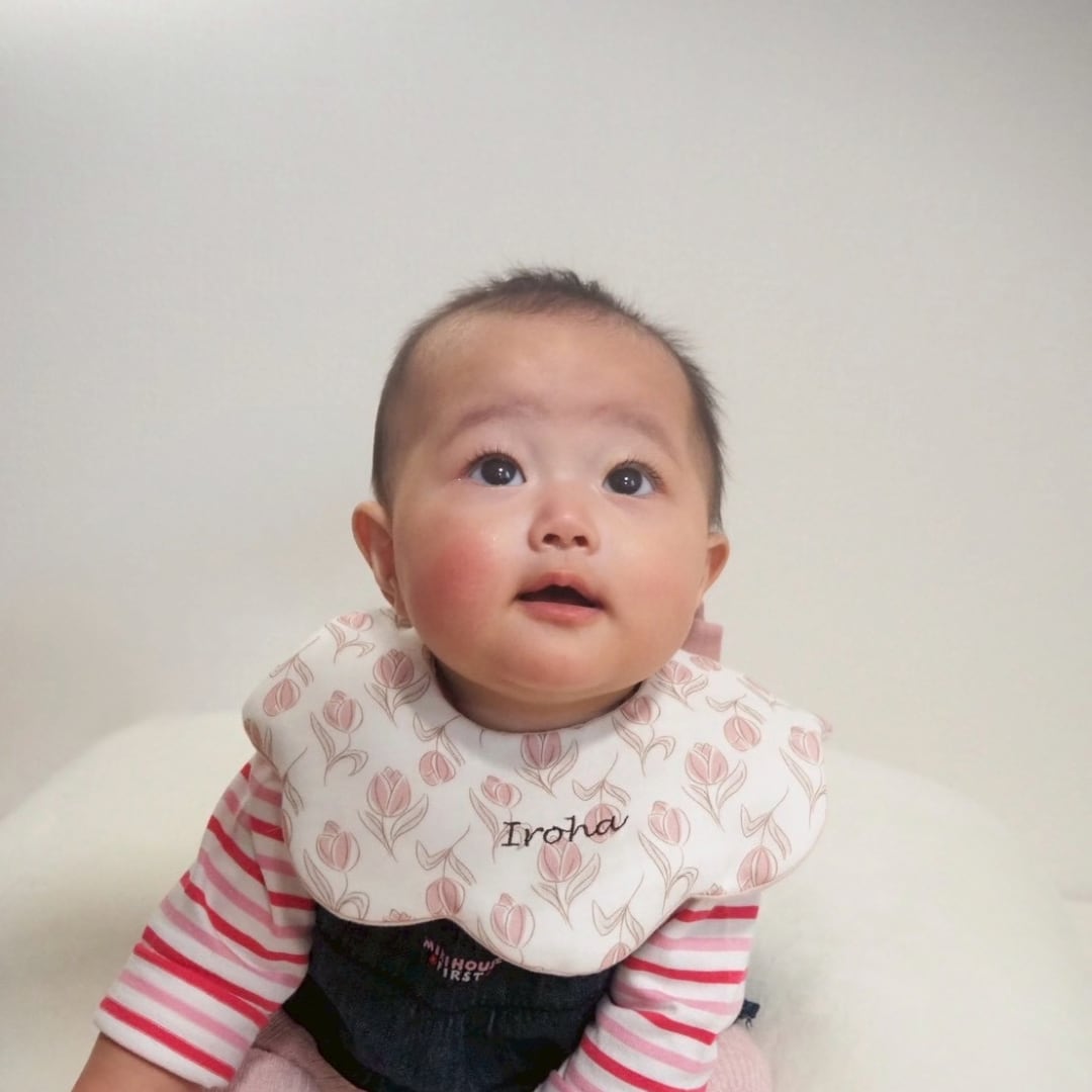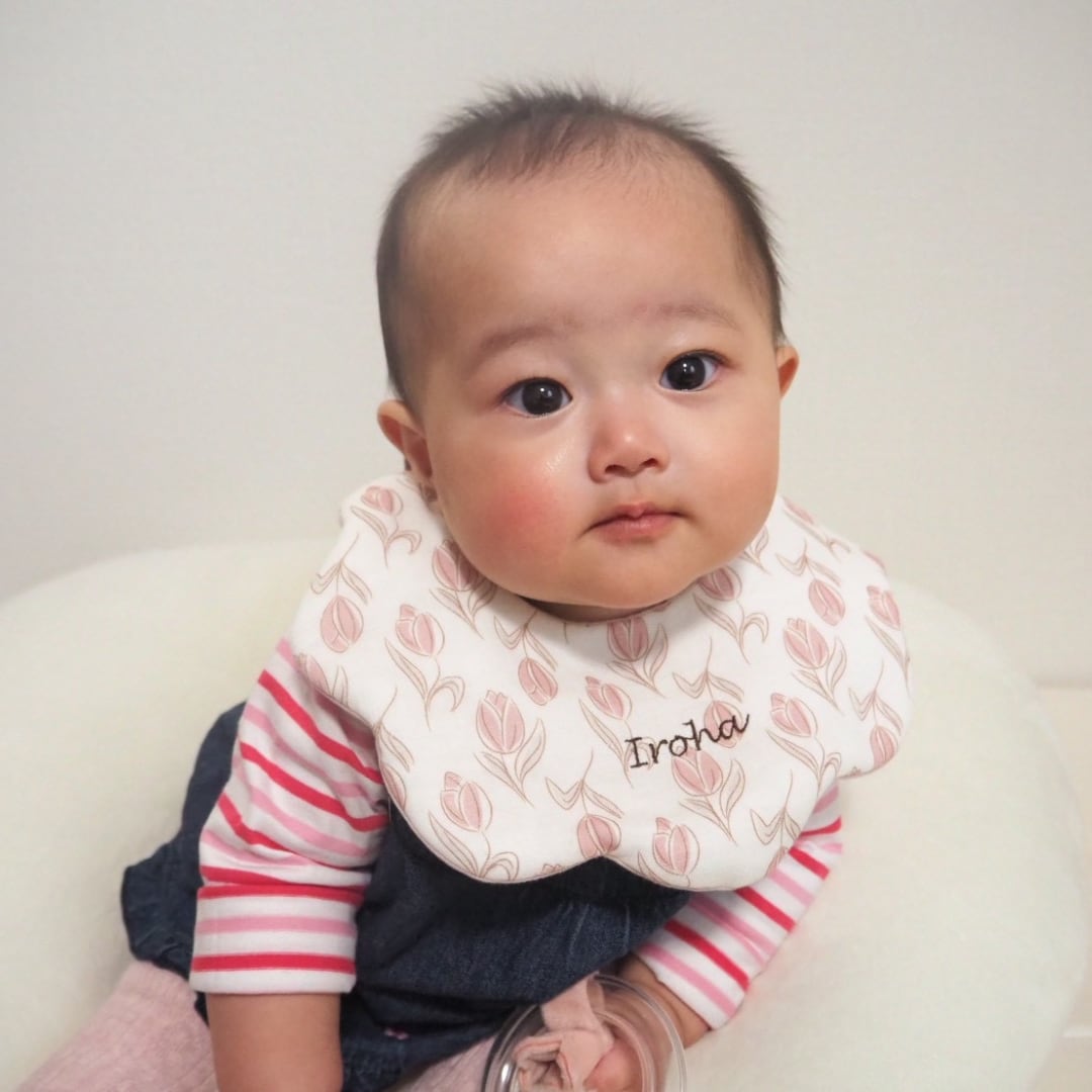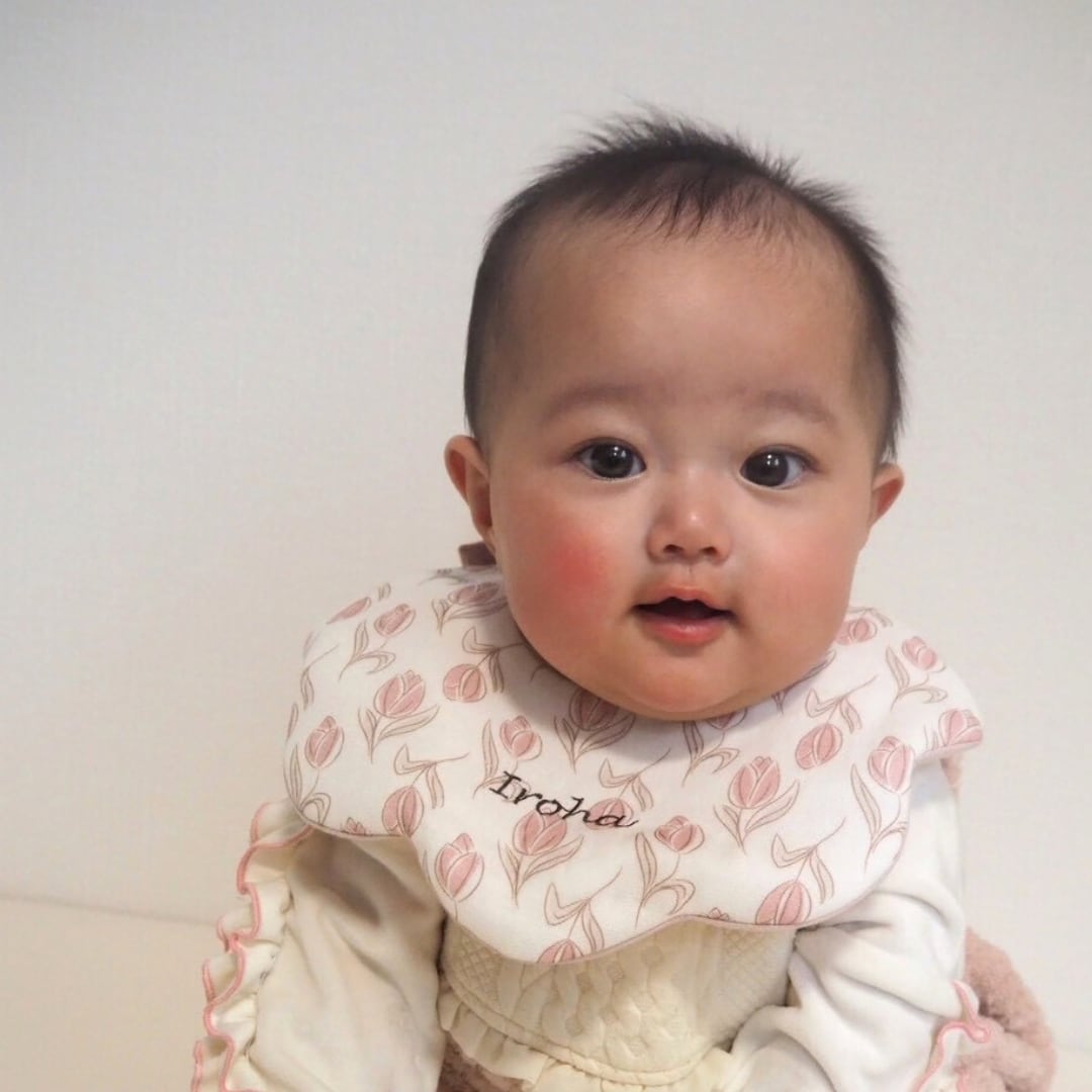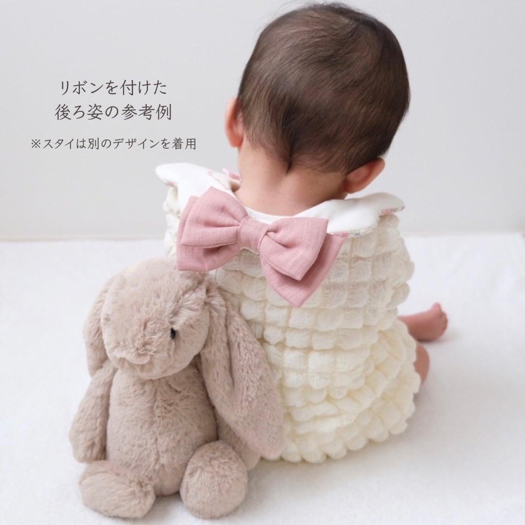 omekashi ribbon bib|チューリップ柄|リボンで楽しむおめかしスタイ|リバーシブル・名入れ可|出産祝い・ギフトに|春コーデ