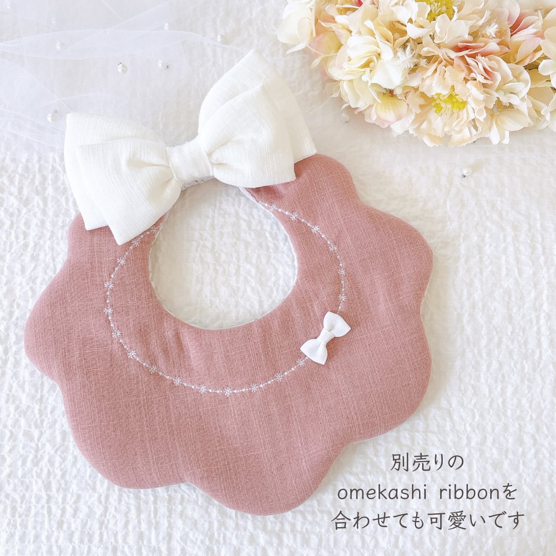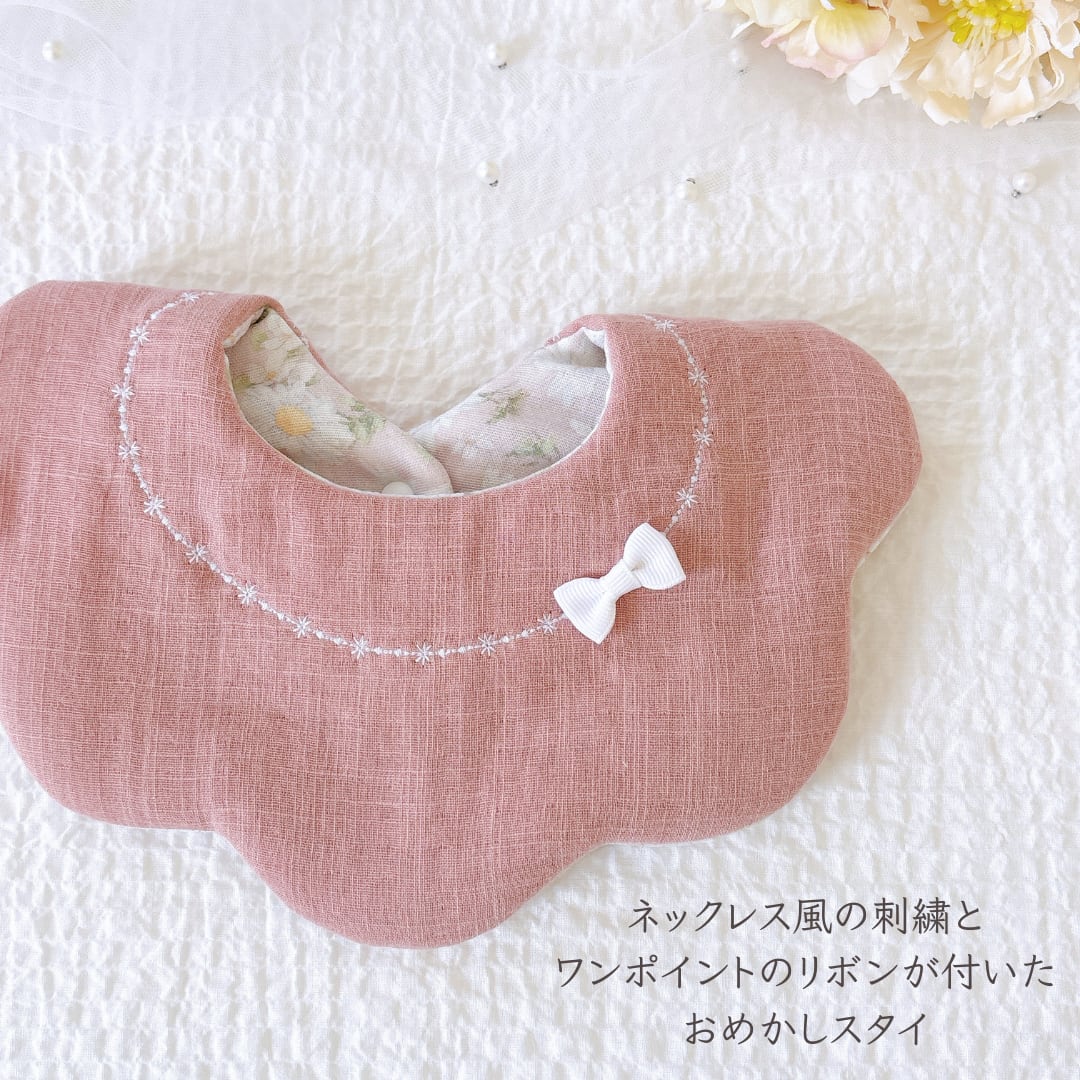 ネックレススタイ|スモーキーピンク|チェーン刺繍のおめかしスタイ|フォーマル・お出かけに|出産祝い