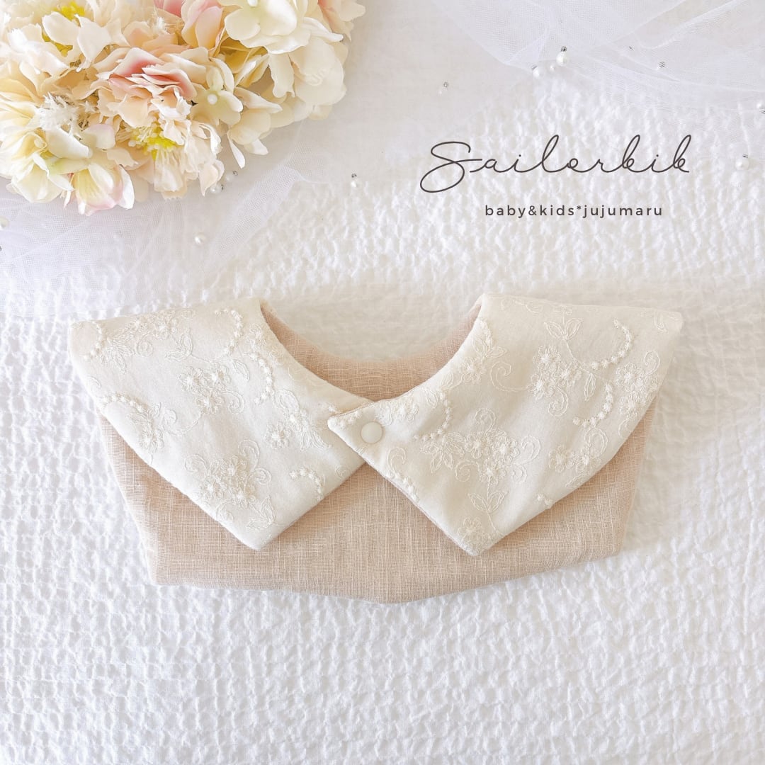 セーラー襟風スタイ*エレガントな刺繍柄 女の子おすすめ♡