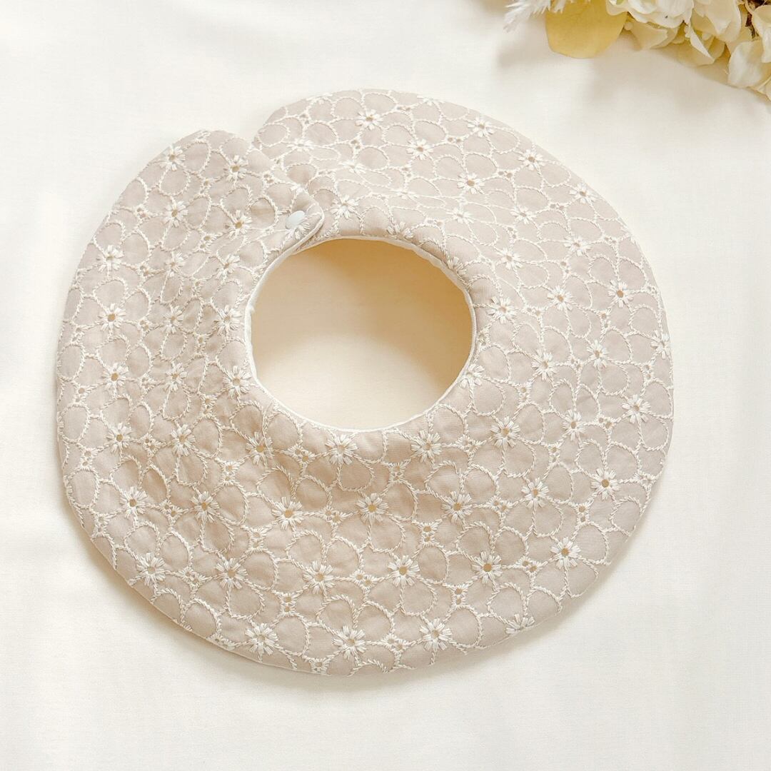 花柄レース刺繍のまんまるスタイ/くすみカラー/出産祝い/ギフトラッピング可